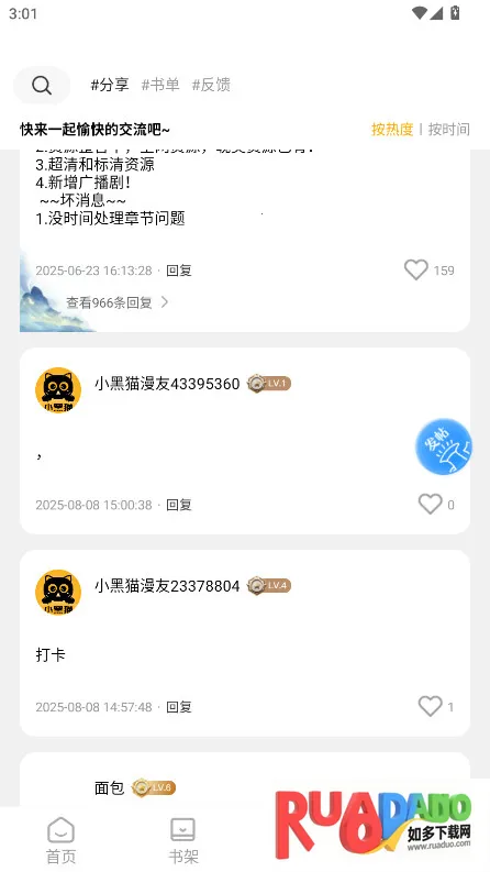 小黑猫漫画app官方版是免费漫画阅读软件,资源丰富,涵盖国漫、日漫等。每日更新,依用户偏好精准推送。支持下载离线阅读,有夜间模式,阅读体验舒适,还能互动交流,快来享受漫画乐趣。