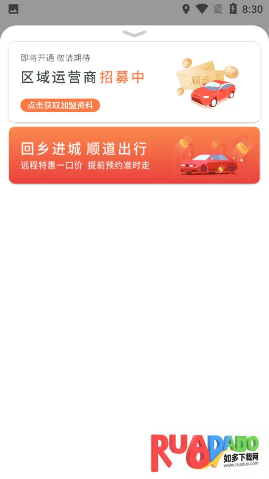 顺道出行司机端是一款出行软件,有城际拼车、定制客运、小件快送等功能。无中间抽成,本地化运营,智能调度。覆盖多城,司机优先招本地居民,营运新车有百万级乘车险,保障司机与乘客权益。