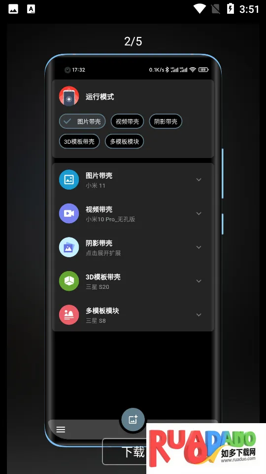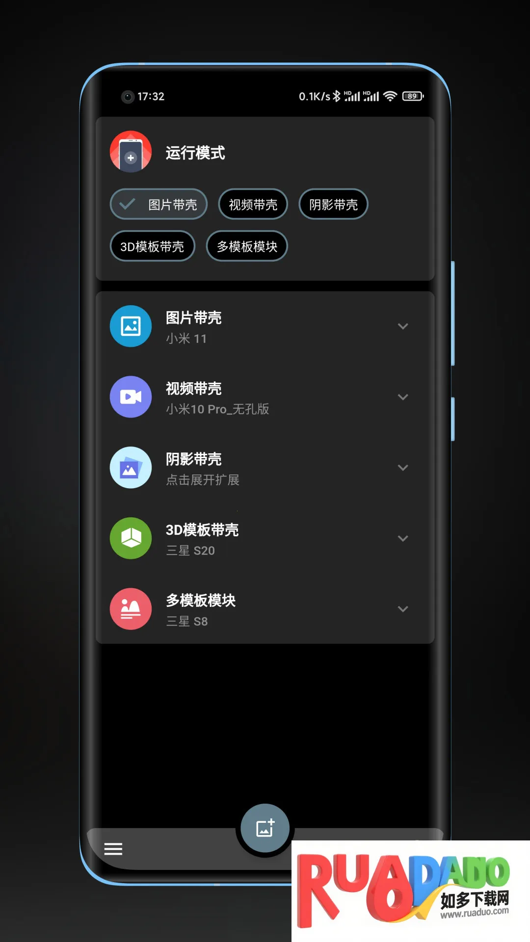 2. 提供多款常见机型素材,苹果机安卓机都有,壳多且能网络更新。