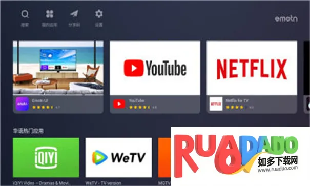 Emotn Store电视应用商城专为智能电视等设备设计,有众多热门电视软件。无需账户,无地域限制、无广告干扰,免费下载。具备多种功能与特色,涵盖影视、游戏等,操作方便,体验流畅。