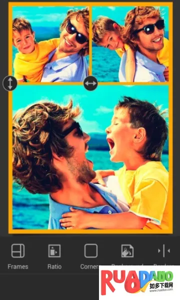 2. 具备拼贴编辑功能,可将多张照片组合成拼贴画,自定义框架背景及贴纸。