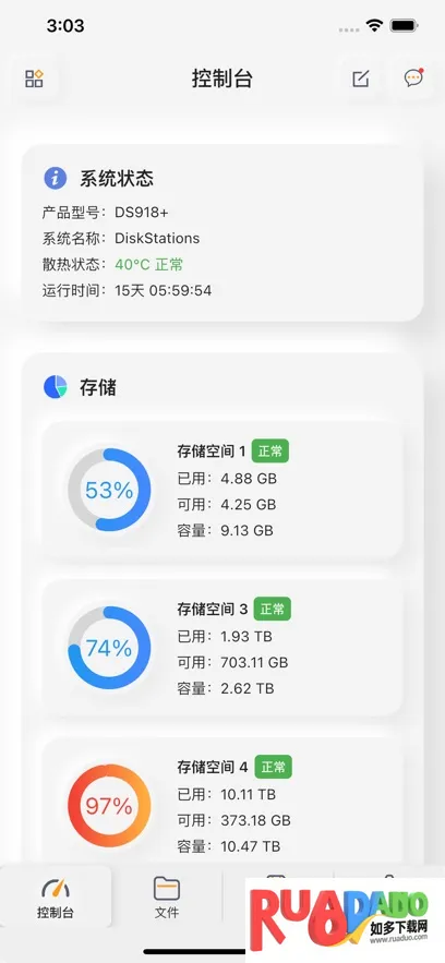 2、随时随地可查看下载情况、存储空间等,还能访问控制面板信息。