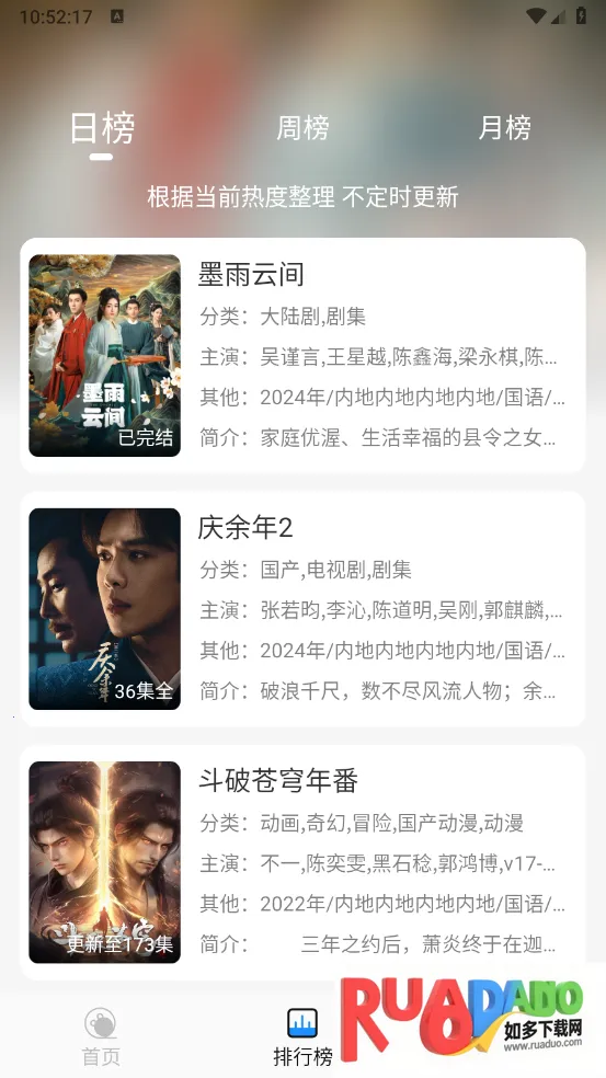 4、全天更新:每日同步更新热门剧集,提供实时排行榜,精彩不错过。