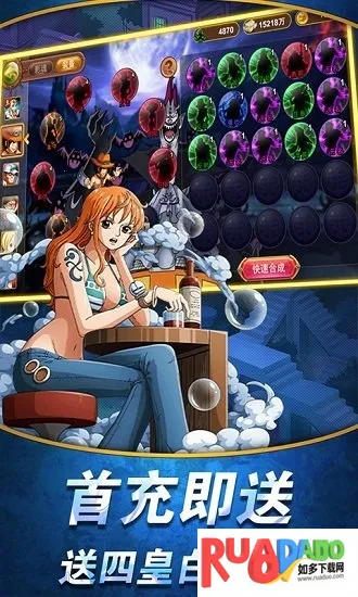 3. 设有珍宝巡航海底监狱等特色副本,告别单调玩法,用多变阵容演绎全新海贼王故事。