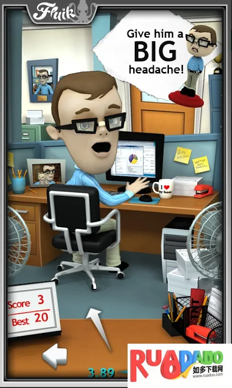 4. 能让玩家向对面呆呆的同事扔各种东西,比如铅笔、订书机等,还可破坏其办公桌、打翻照片,甚至抡拳重击其后脑勺,尽情捉弄,释放压力。