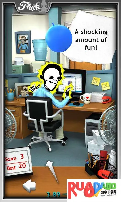 1游戏画面卡通搞笑,采用完全卡通风格,打造的办公室却十分逼真,反差中产生焦点,搞笑风格发挥得淋漓尽致,恶搞画面令人发笑。
