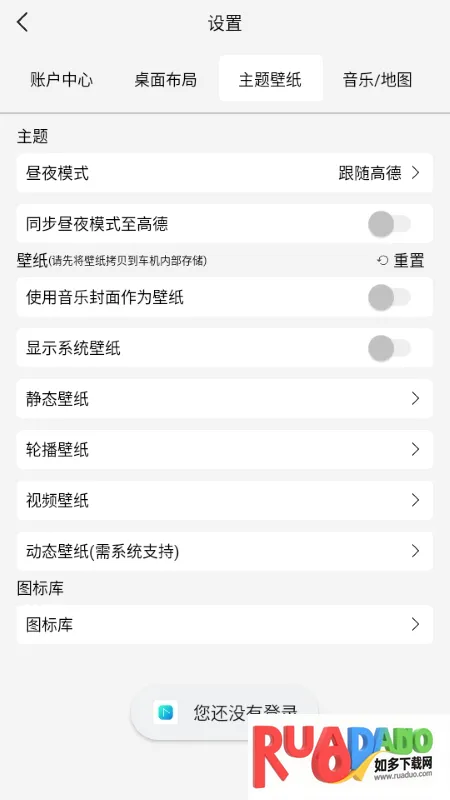 2. 支持设置昼夜模式切换,还能自定义壁纸,包括轮播和动态壁纸,音乐界面更简洁美观,支持显示歌词和歌曲封面。