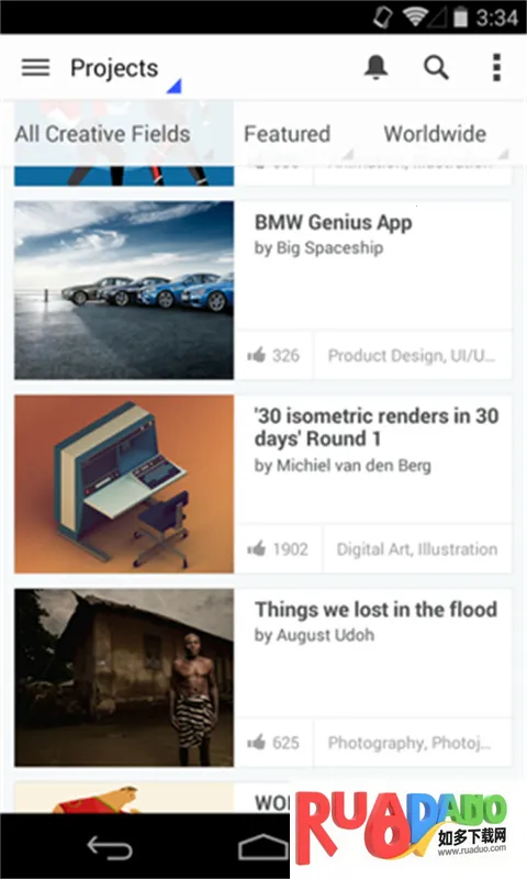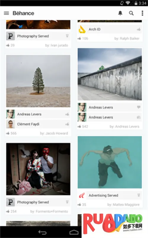 Behance是Adobe旗下著名设计社区软件,有大量专业设计者的完整作品。能获取各领域丰富高质量知识,知名设计师还会分享创作过程。支持多种操作,优势亮点众多,可助用户找灵感、分享作品、高效互动。
