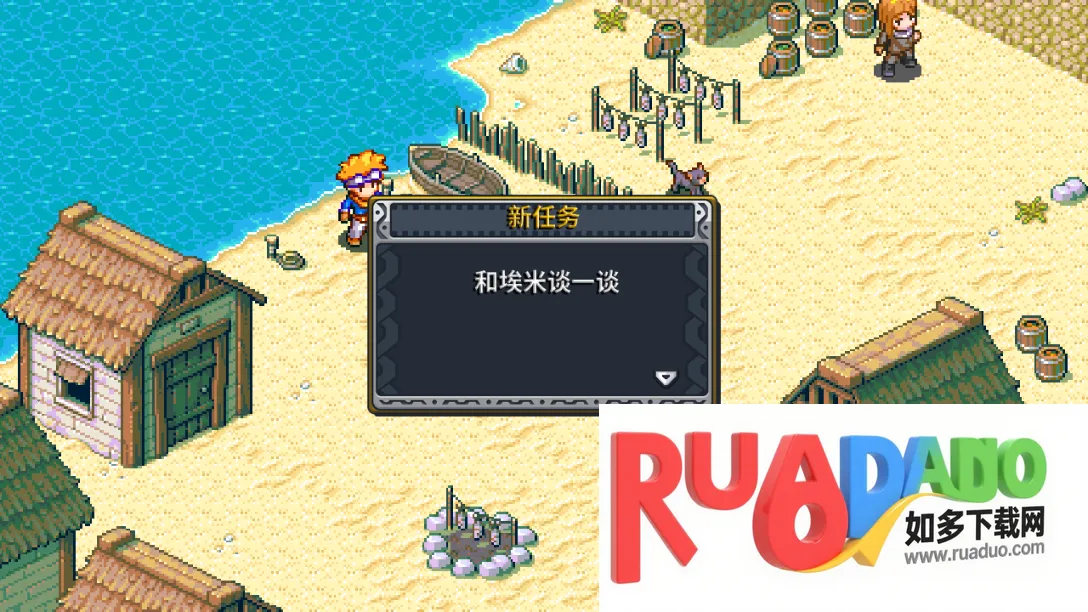 4、正式进入游戏以后,爷爷会交给角色一个任务,那就是去海边修筑围墙,并带上埃米,因此会获得一个新任务;