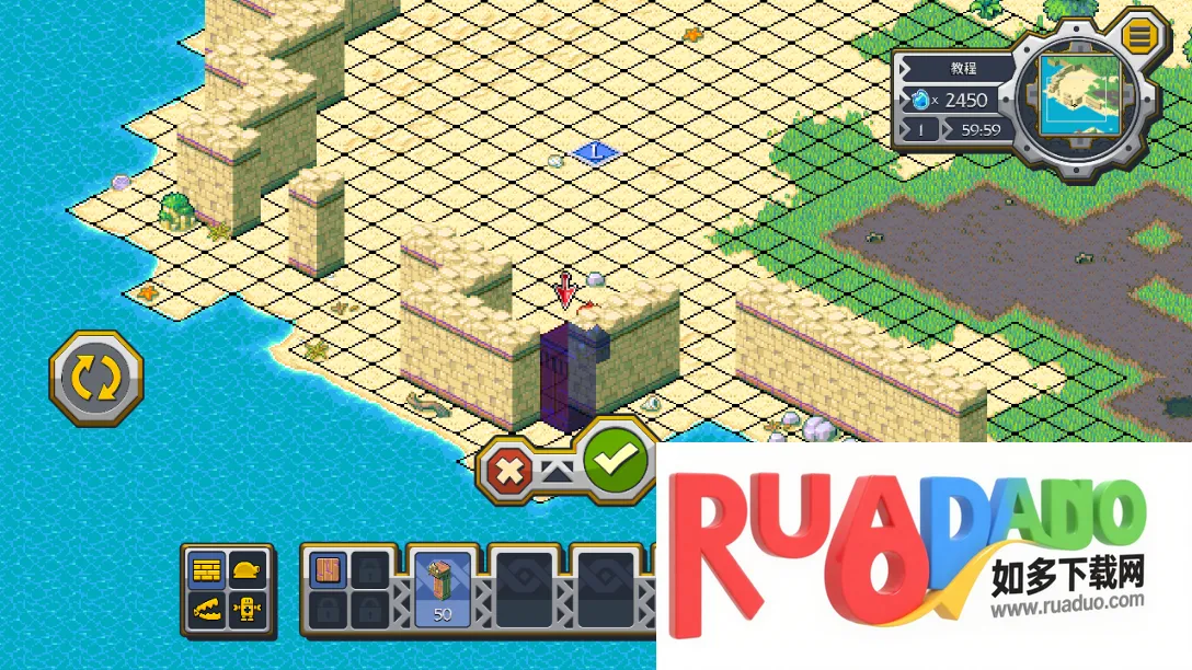 8、如果点击【√】没有反应,那就意味着没有放好,可以点击左方的按钮对围墙进行旋转,然后再点击【√】;