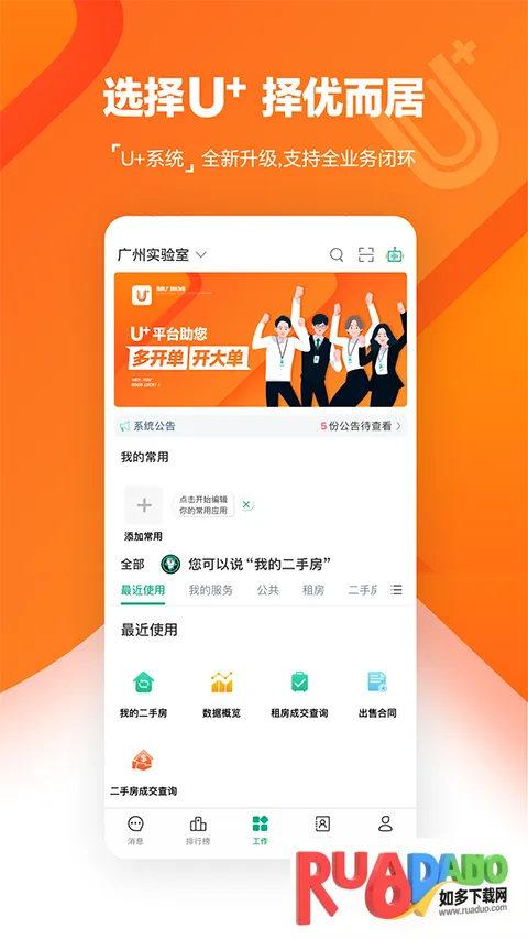 U+app 是专为房产经纪人打造的办公软件,覆盖全国 200 城市。能提供海量房源,精准匹配,有线上服务与专业团队。可助力管理业务,找房省心,是加盟商优先选择平台,还有诸多特色功能及便捷修改密码方式。