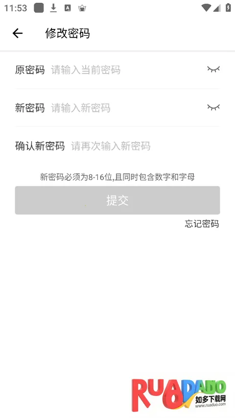 4、正确输入原密码,再重复输入新密码后点击提交按钮即可。