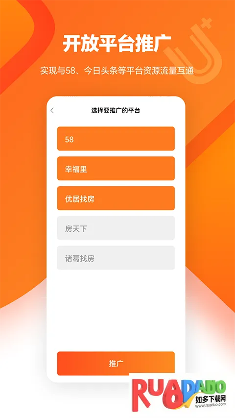 4. 资源共享,房客源等可共享和匹配,不错过任何成交机会,还有一键同步外部流量平台等优势。