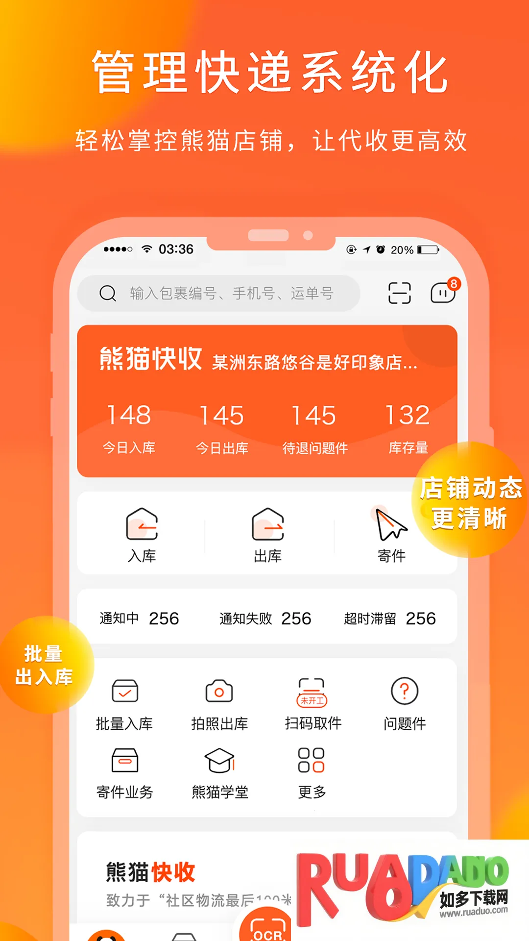 熊猫快收是专为快递驿站开发的 Saas 软件,支持多件批量出入库管理、信息通知、数据统计等。融入智能识别技术,免费入驻,与多家快递公司对接,功能强大,操作简单,能助力站点全方位管理包裹、高效运营。