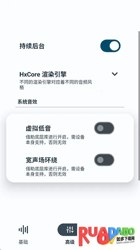 HubeRSoundX 是一款专为 Android 12 及以上设计的音频处理工具,无需高级权限即可全局音效增强。采用 HxCore 算法,结合 API 二次音频渲染提升低频。可自由切换模式、自定义调音,还有多设备联动等丰富功能,打造个性化音质体验。