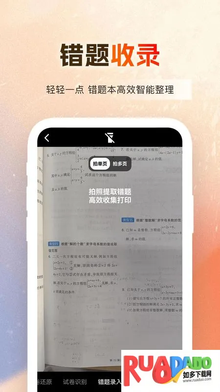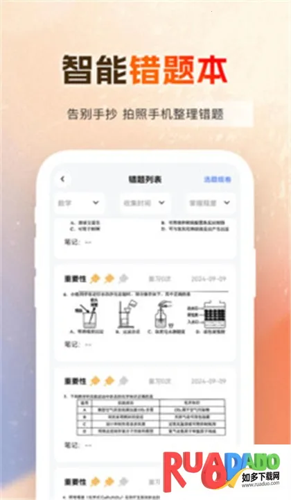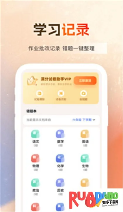 3. 采用傻瓜式操作方法,拍照就能检查作业。它为中小学生打造,拍照上传作业能知对错,错误可直接添加到错题本,还有海量题目供练习,能记录每天学习情况。家长用它方便批改作业,还能分析孩子学习情况,孩子也能据此制定复习计划,学习进度清晰可见。