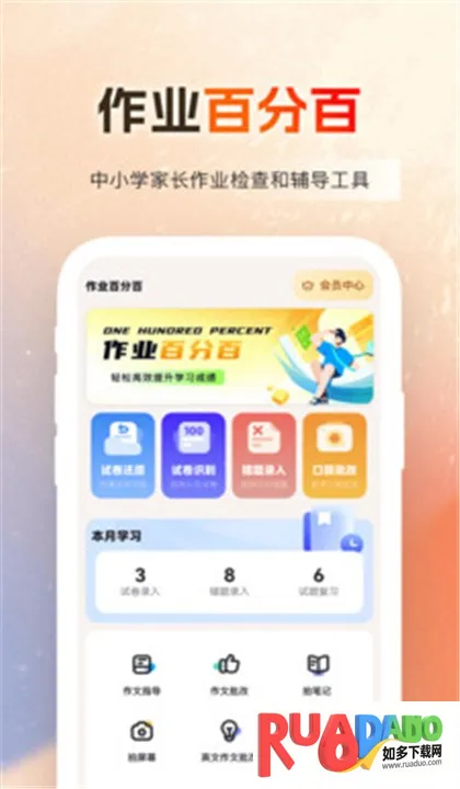 作业百分百拍照搜题超实用!它专为中小学生打造,能帮你快速解决作业难题。只要把作业拍照上传,就能知道对错,错误还会及时指出,直接添加到错题本。海量题目随时可练习,每天学习情况一目了然。它有很多强大功能,作业辅导有详细解析,试卷识别速度超快。能自动裁剪拍照区域,在线口算批改超省时,操作简单,拍照就能检查作业。还有 AI 诊断功能,帮你找到学习薄弱点,带来优质课程可在线学习。作业批改记录随时能查,错题一键整理。对孩子和家长都很适用,家长能实时看到批改内容,分析孩子学习情况,孩子可制定复习计划,学习进度清晰明了,用它学习超方便!