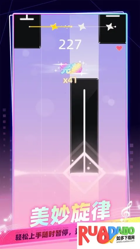 2. 音符下落速度逐步递增,玩家要集中精力适应节奏变化。