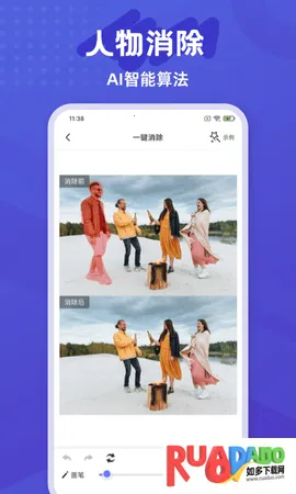 1. 能智能识别并去除图片中的杂物路人甲和脸上的瑕疵,让照片更干净整洁。