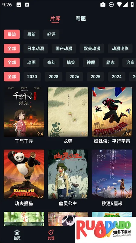 2、在发现界面下,我们可以根据热度、年代、类型、地区等条件筛选出各种宝藏动漫。