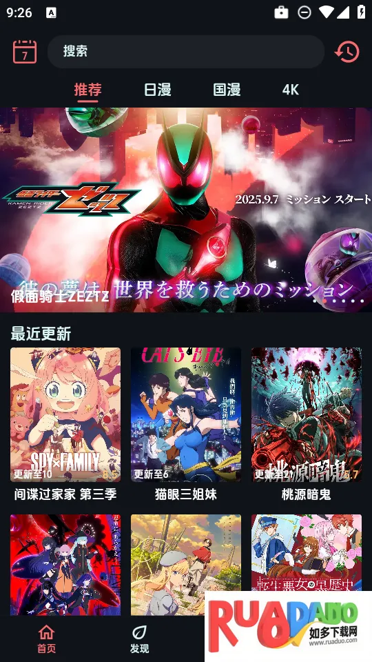 1、在软件首页下,我们能够看到一系列最新更新的日漫、国漫等动漫作品。
