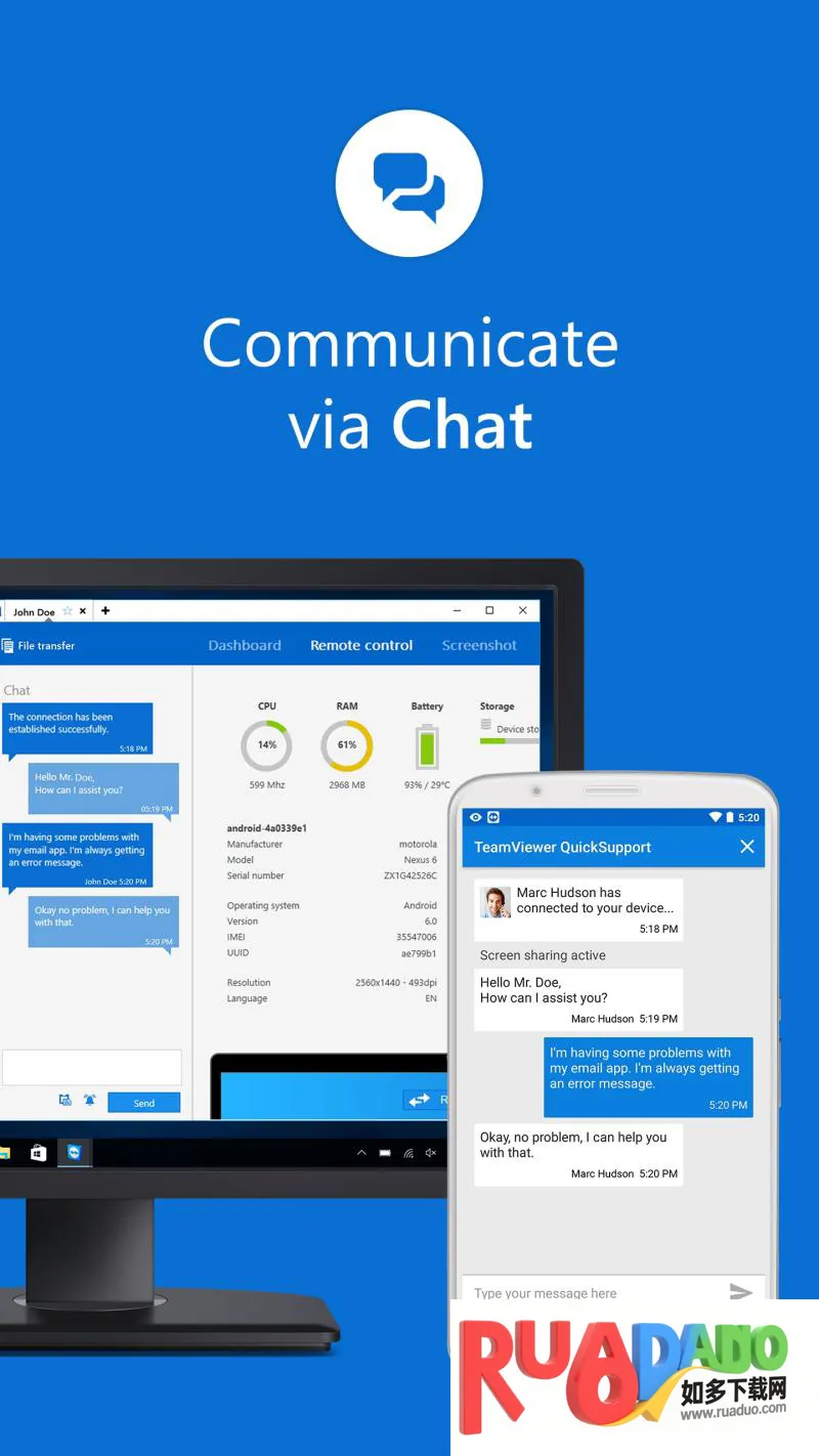 QuickSupport远程控制挺安全的。它采用256位AES会话编码,还有2048位RSA密钥交换,符合最高安全标准。有了它,能解决不少问题呢。比如手机连Windows或Mac系统麻烦,它就能帮你轻松连接。技术人员可远程帮你解决设备问题,能对话、收发文件、查看设备信息、停止进程、推送WLAN设置等。还能查看系统诊断信息、设备实时截屏,把机密信息存剪贴板。不管是在家办公想连办公室电脑,还是手机有问题找技术支持,都很方便。你可以在手机上轻松操作,技术人员在电脑端操作也不难,按步骤来就行。有了它,设备维护、文件传输等都变得简单高效,赶紧来本站下载体验吧。
