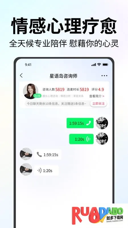 星语岛2026官方正版是在线心理咨询服务平台,有不同心理专家。除咨询板块外,还有婚恋情感等板块。能筛选咨询师,提供隐私保护、实时回应等特色服务,助用户解决心理疑问,获专业解答。