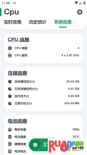 1. 能立刻查看系统当前温度与频率,有助于快速排查手机卡顿原因。