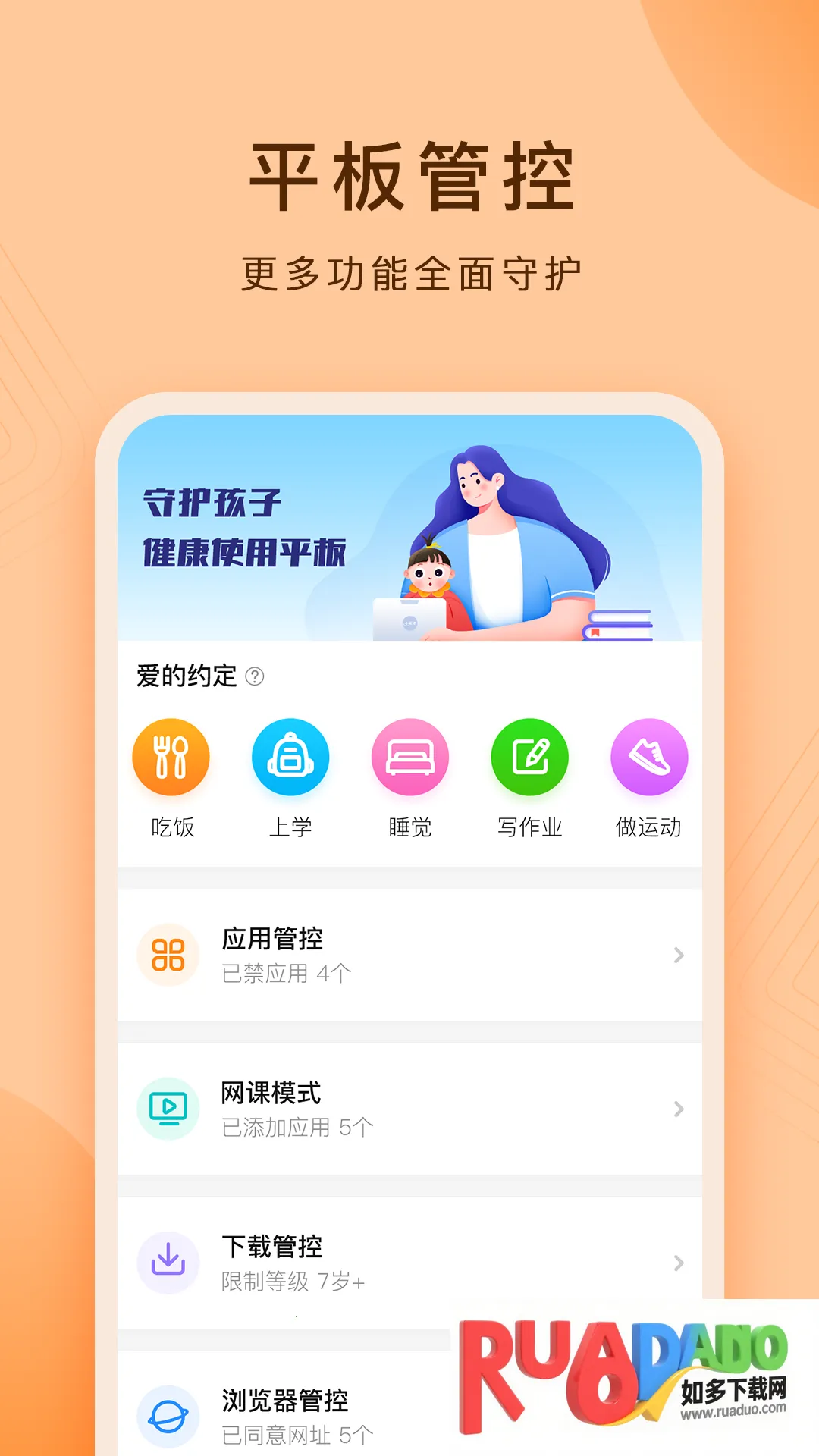 4. 可进行应用使用管理和下载管理,设置年龄限制,防范违规应用。