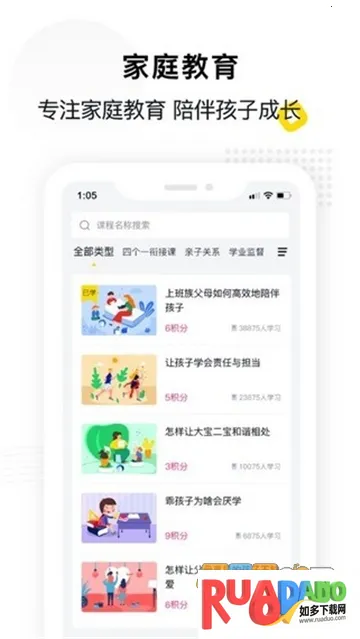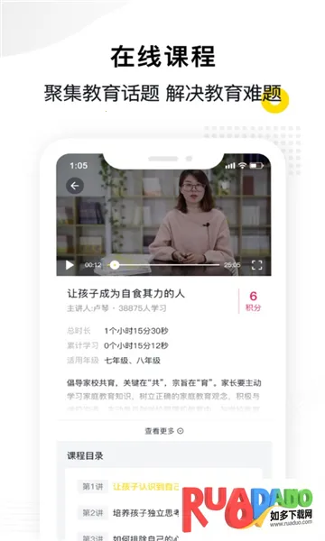 2. 有丰富家庭教育普及视频课程,助家长更好沟通交流,传播价值。