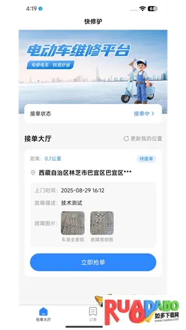 “快修驴师傅端2026下载”所对应的这款软件优势显著。它专注特定领域维修,突破传统局限。高效的订单处理系统让维修流程更顺畅,位置追踪和资源优化极大减少用户等待时长。师傅与车主的直接沟通及个性化服务,能更好满足用户需求,为用户带来优质的电动车维修体验,值得下载使用。