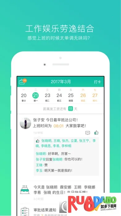 1. 它能提供便捷签到方式,多种工作提醒,丰富互动元素,提升员工办公能力与效率。
