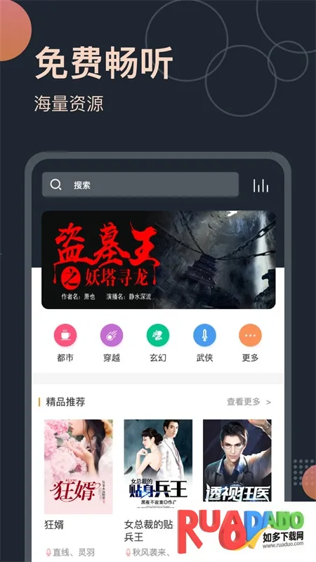 免费听书王是一款实用的有声小说听书软件,书籍内容全,支持看书和听书。有海量资源、热门作品,多维度分类导航,还有睡眠模式等。正版资源,无广告,可下载、站外搜索,能满足多样听书需求。