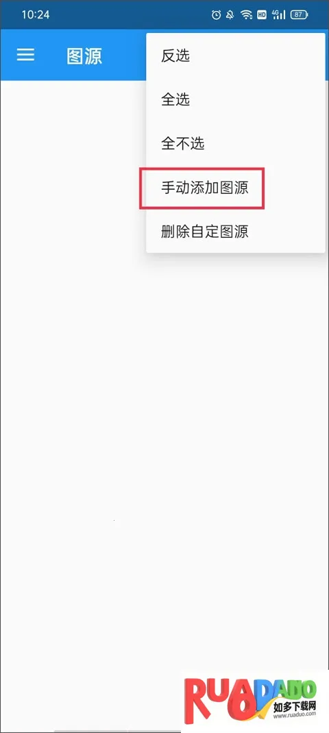 3、这里会显示所有的图源网址,点击右上角的三点图标并点击手动添加图源。