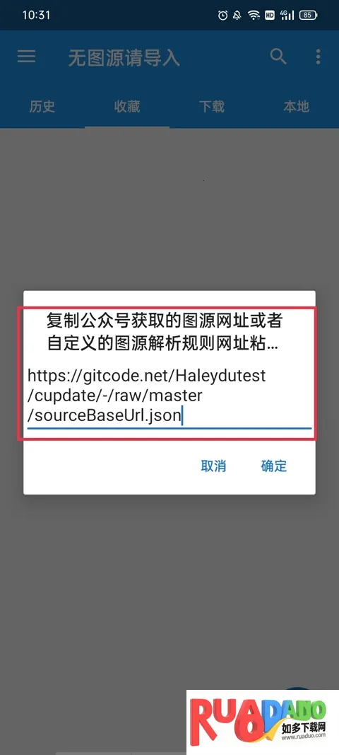 1、同样还是打开app,这时会弹出一个复制公众号……等等提示,将第三方图源网址复制到这里。