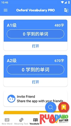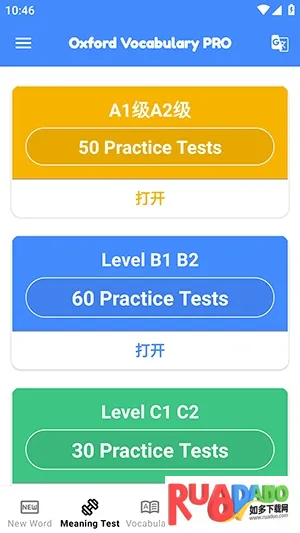 OxfordVocab是英语学习APP,词条有精准释义与真人朗读,支持英美发音切换。基于情景课程等生成个人学习内容,有数百个情景课程包,提供海量素材与多种练习模式,能满足不同需求,助力夯实词汇基础。
