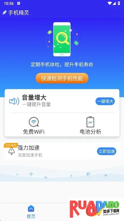 手机精灵APP2026最新版是专业手机优化工具,能智能加速、解决卡顿,支持应用管理与通知清理。还具备全盘查杀、一键清垃圾、优化电池续航等功能,界面简洁,提供个性化方案,方便各类用户维护手机。