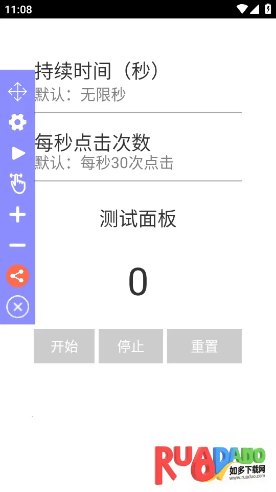 3. 可实时设置手机点击频率、手指按下时长、手指弹起时长等参数。