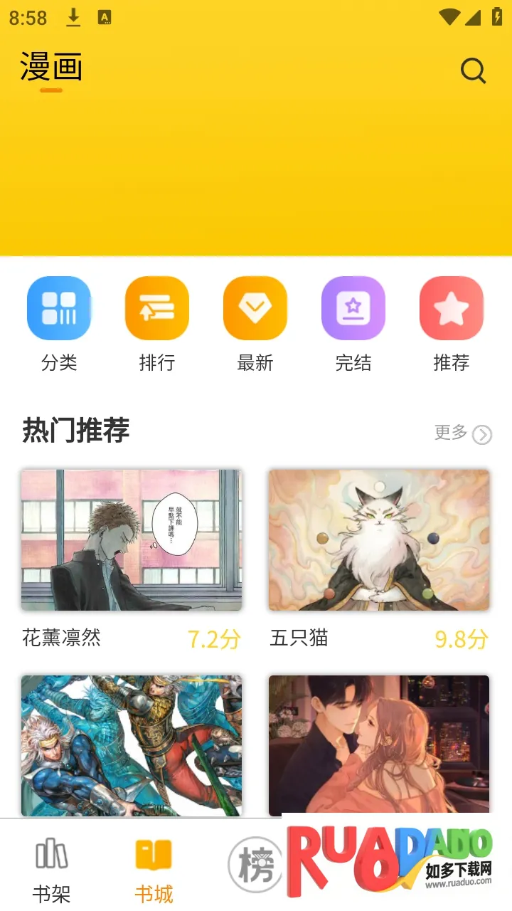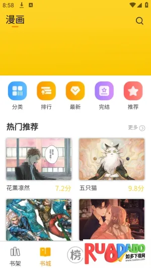 3、我们可以在书架页面对漫画进行管理。