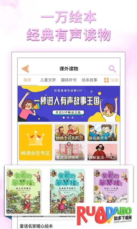 2. 内置海量绘本与课外读物,开阔孩子的阅读视野,培养良好的阅读兴趣。
