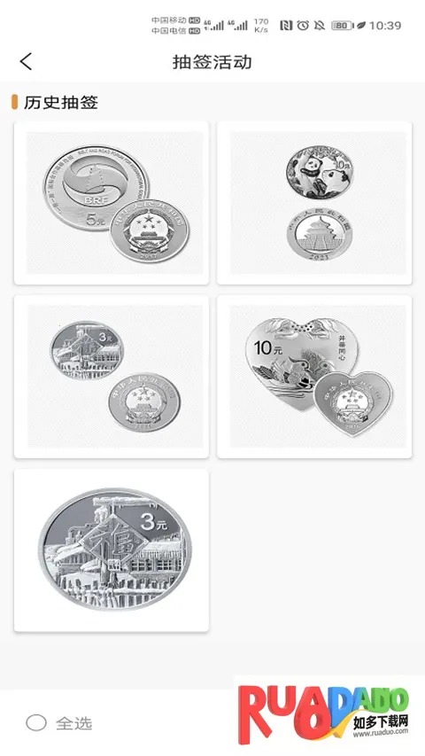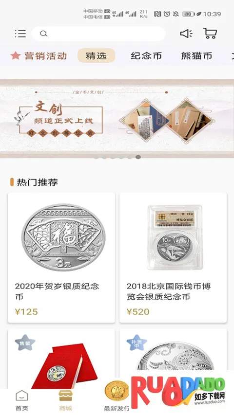 4. 能查阅精品纪念币,在线迅速选购,切换产品类别查看信息,浏览活动,进行订单购物及查看物流进展等。