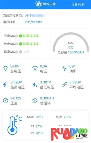 蚂蚁bms保护板app是一款实用的电池保护软件,适配蚂蚁BMS设备。能实时监测电池状态,查看详细参数,支持参数设置、远程控制。具备多种功能优势,如主动均衡、大数据技术等,还有IOS版,方便用户管理电池。