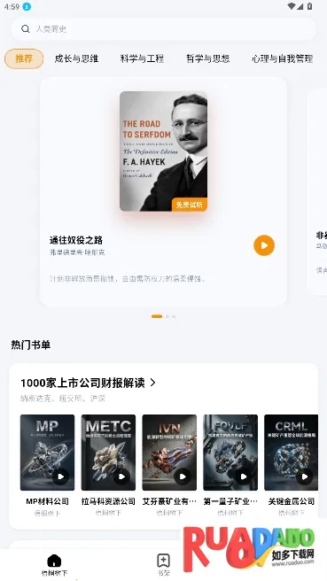 2. 能将不同书籍进行智能推荐,助用户获取更多热门书籍收听。