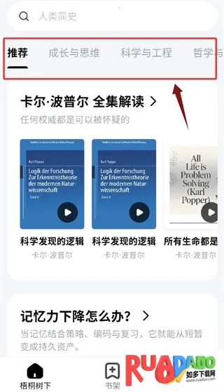 2、在首页的栏目提供了推荐、成长思维与科学工程等分类;