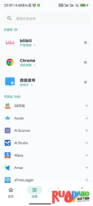 2. 能统计各应用时长,达限额提醒或限制,结合不同提醒让心里有数。