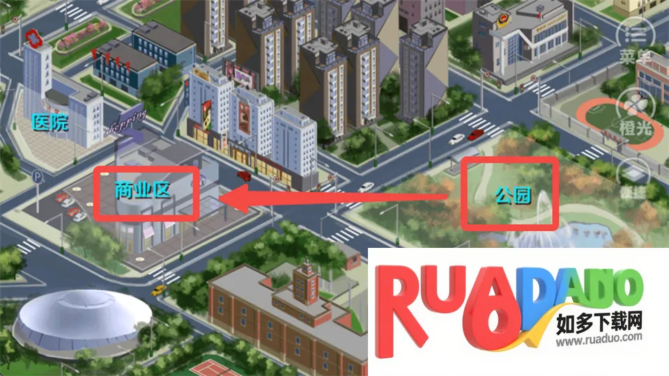 11、公园、商业区全都点一遍,最后去医院。