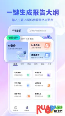 千寻搜索最新手机版是智能搜索软件,提供一站式服务,能快速获取各方面信息。自带AI创作、智能聊天功能,可助力内容创作、梳理文章、提供创意模板,整合全网信息,精准解读意图,让创作更轻松。