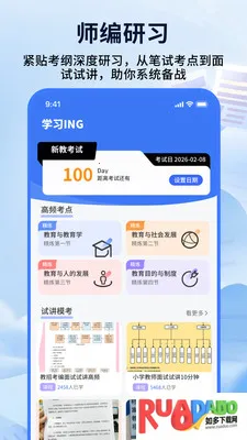 教师编制考试是免费备考神器,有多种教编题库。能适配备考计划,更新考勤。错题库分类清,可自定义学习。还有核心模块复习、语音速记、视频讲解,操作简单,助考生省心高效备考。