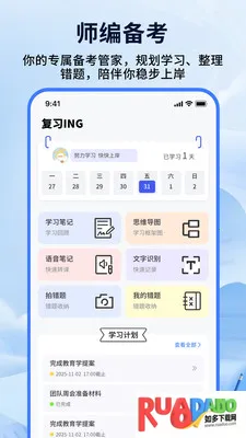 教师编制考试要求,备考神器来帮忙!它有多种教编备考题库,能帮你高效备考。软件特色超棒,贴合考试详情,及时更新最新考勤信息,让你轻松找到所需资源。错题库分类清晰,错题标记明确,还有详细解题步骤,助你掌握知识。能自定义学习任务和章节范围,匹配个人备考节奏。软件亮点也不少,能整理教育综合等核心模块的复习思维导图框架。语音笔记速记,提升学习效率。多样化视频讲解,清晰解决疑难问题。使用时,安装打开 app 选报考科目,就能自定义每日学习任务。利用碎片时间刷题,错题加入错题本。首页还有试讲视频,操作简单。有了它备考超省心,能核心刷题,突破薄弱模块,高效复盘,教编小伙伴快来下载试试!