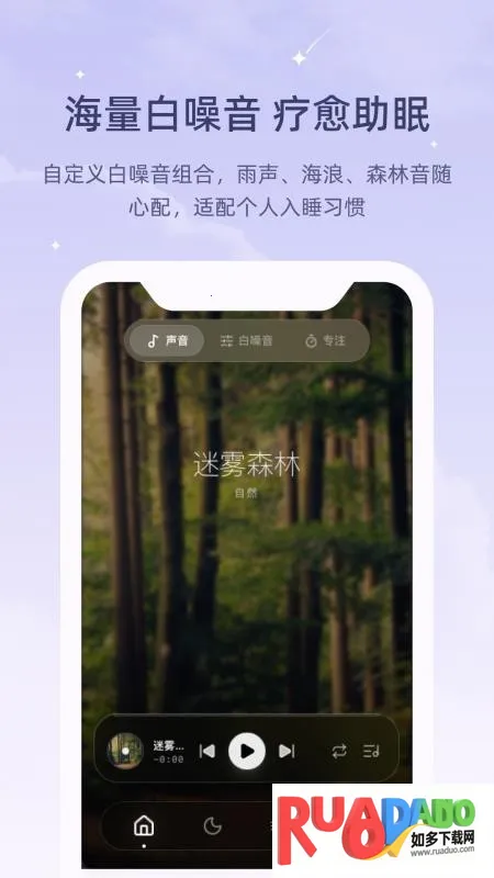 2. 海量助眠音乐自由选,含自然音效,能随心搭配。
